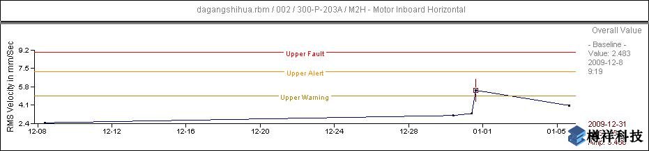 2009年12月31日,監測發現二聯合車間泵300-P-203A的電機靠聯軸器側的振動有明顯的增長趨勢,且伴有軸承雜音,泵側振動基本無變化。